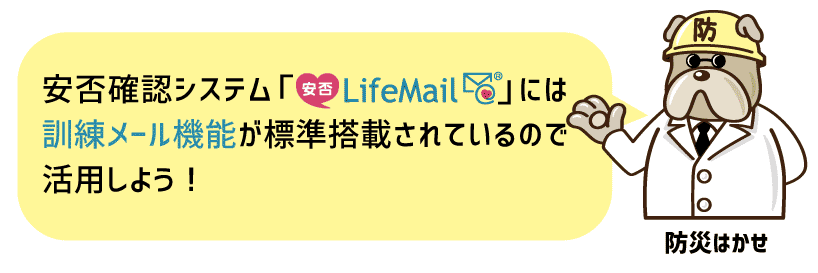 安否確認システム「安否LifeMail」には、訓練メール機能が標準搭載されています。